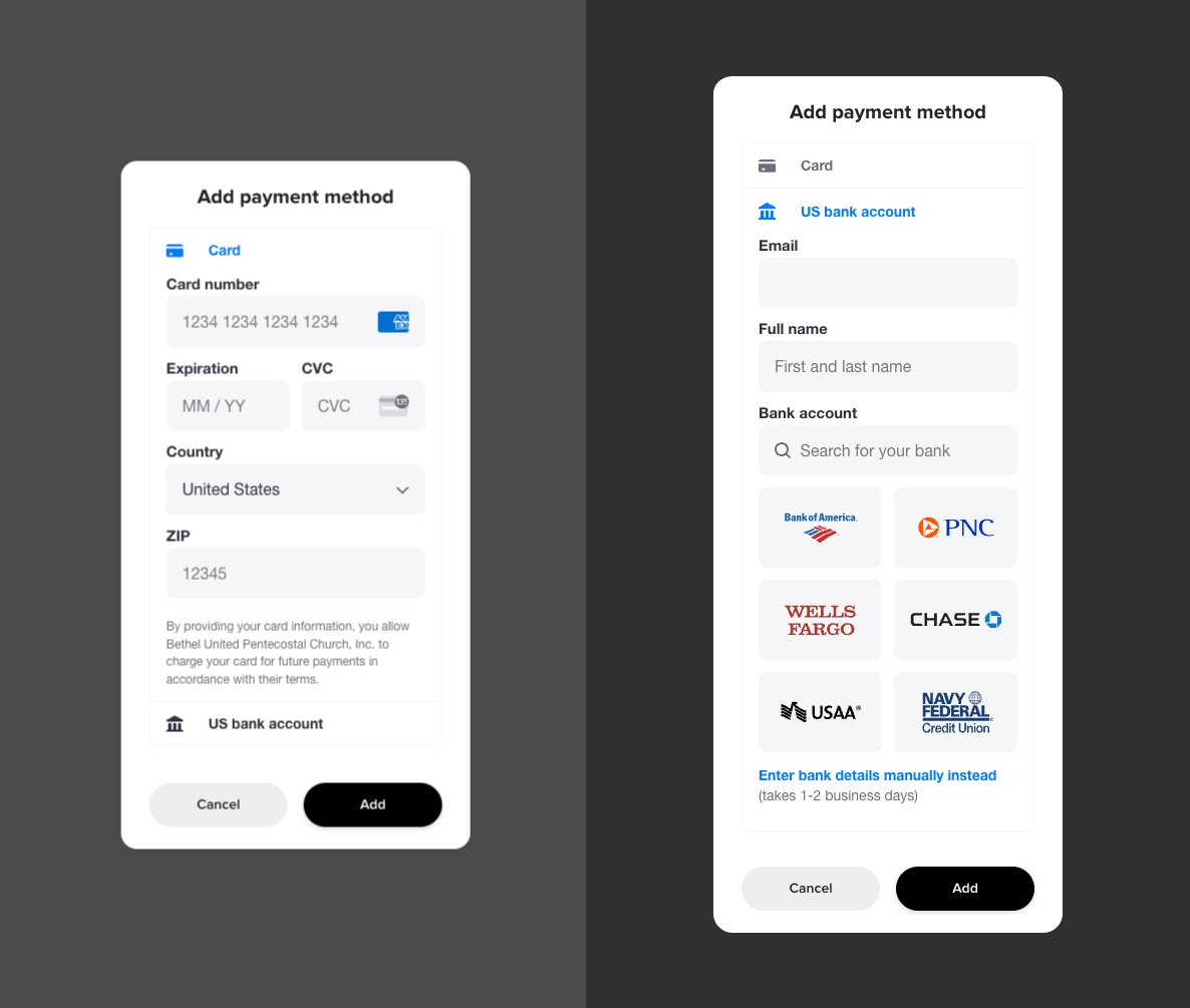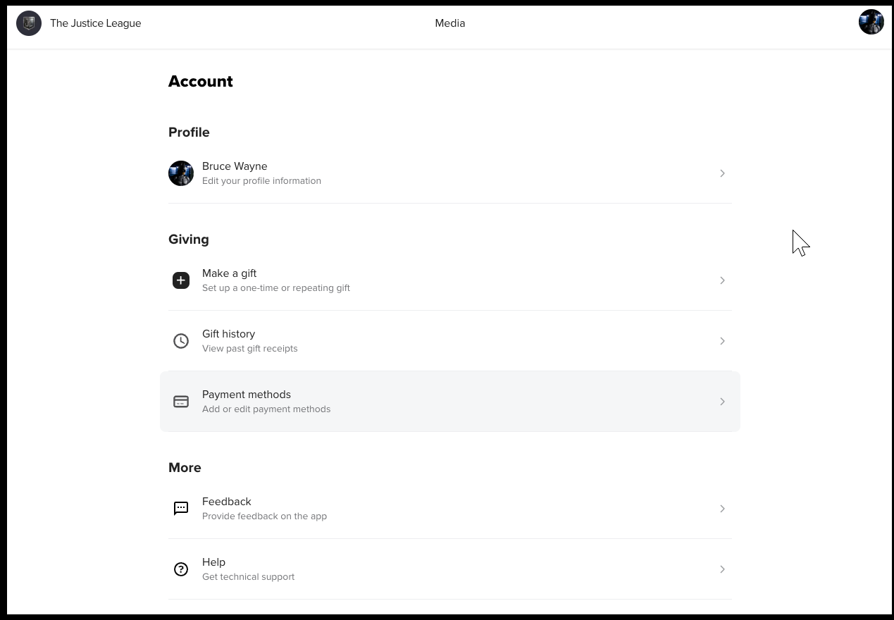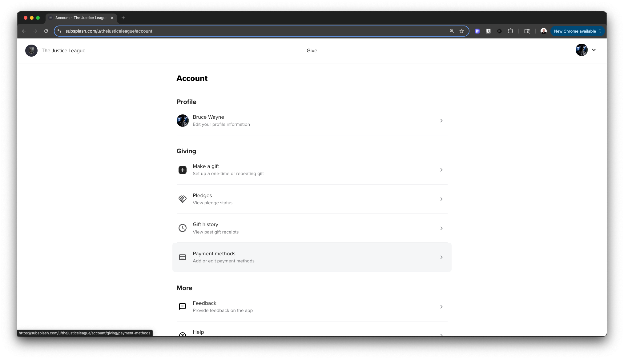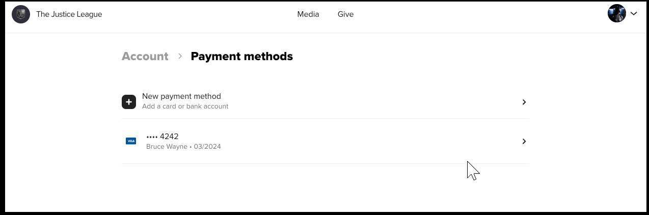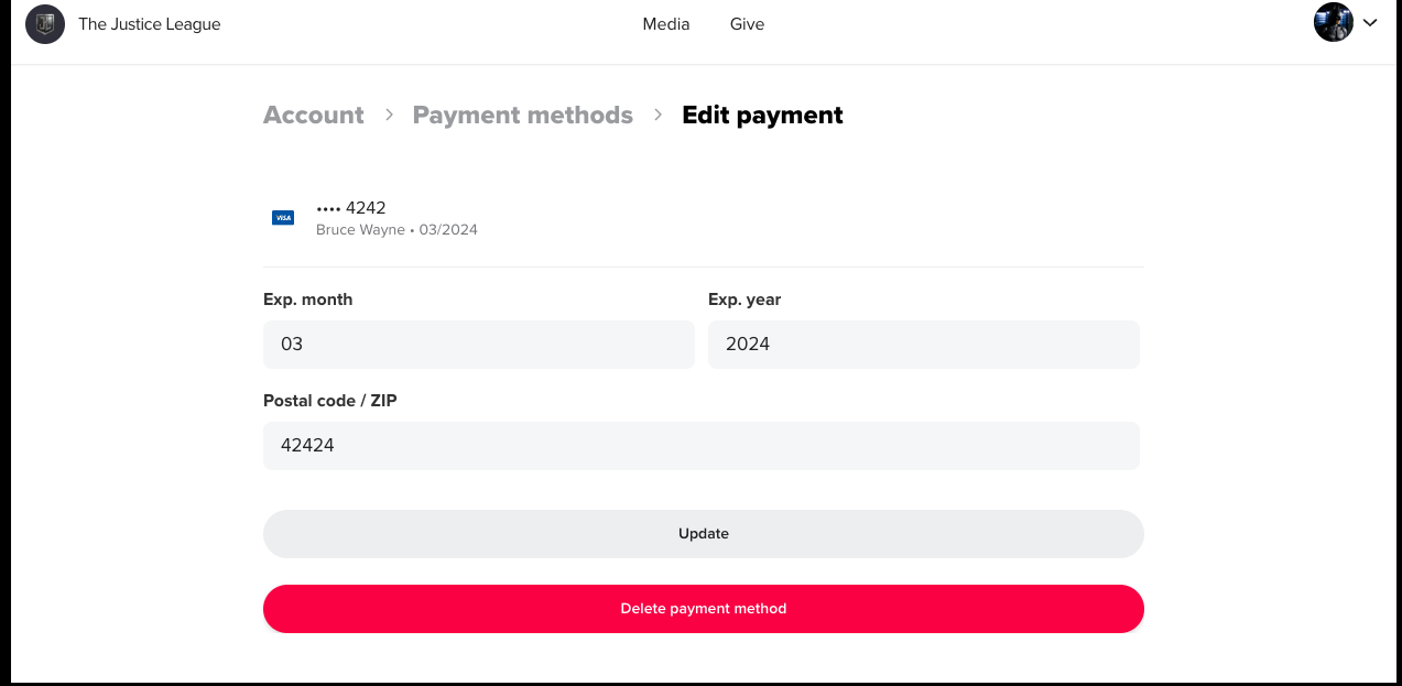 - All your payment information is securely stored with our giving provider and can be managed here.