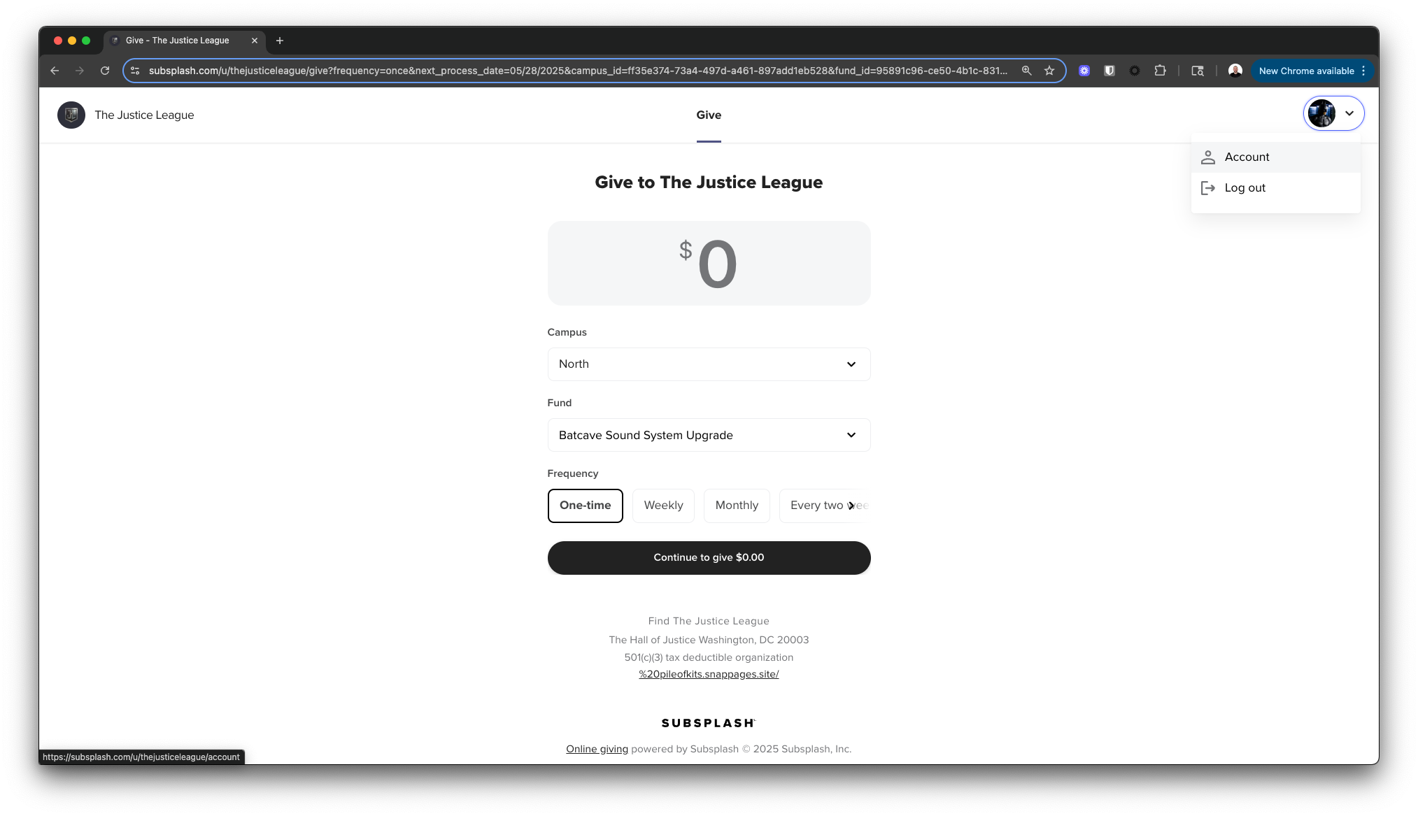 Giving with Subsplash is now integrated into your wschurch.org account!